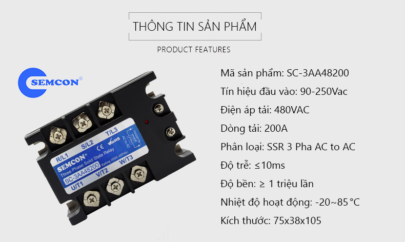 - Phân loại: SSR | Solid State Relay 3 Pha